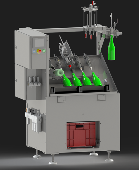 - Roboter zum Auzfstellen und Abnehmen von Flaschen.